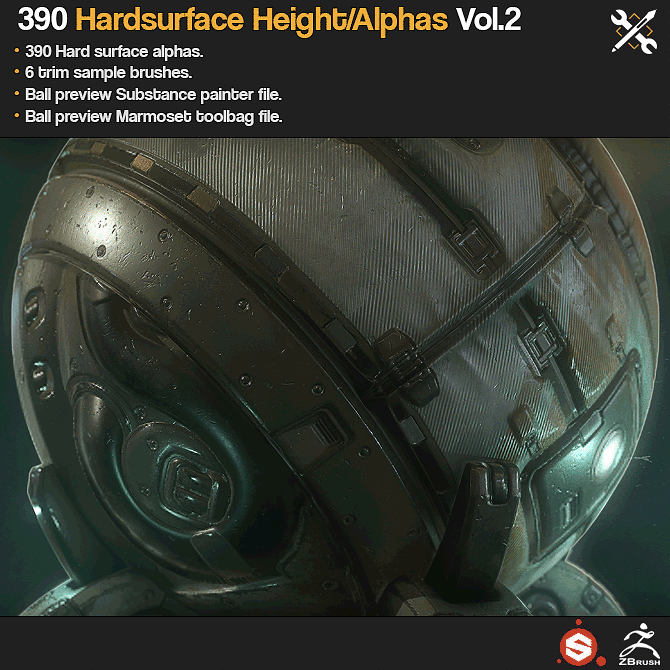 SP/ZBrush 390 Hardsurface Height/Alpha Vol 2