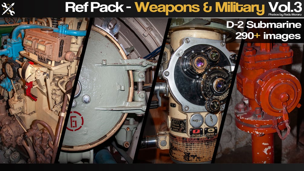 This is a reference set from Radu Moraru that focuses on the interior of a D-2 soviet submarine, a total of 290+ reference images. Images were taken at 12MP (4288 x 2848), lower resolution than my official products but since the images are close up and high quality it's not noticeable.