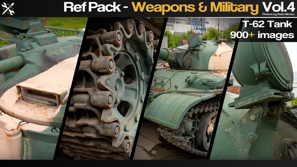 This is a reference set from Radu Moraru that focuses on the exterior of a T-62 Battletank, a total of 900+ images, the images were originally taken for a photogrammetry project which is why there is so many images. Images were taken at 12MP (4288 x 2848), lower resolution than my official products but since the images are close up and high quality it's not noticeable.