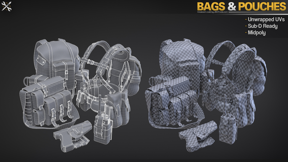 OBJ, FBX, MB, ZBrush files as are included, so you can use these assets with any popular software such as Blender, Maya, 3dsmax, Modo, Cinema 4D, 3DCoat, ZBrush and most other software. As the assets are uv-mapped you can also take them directly into texturing software such as Substance Painter and start texturing.