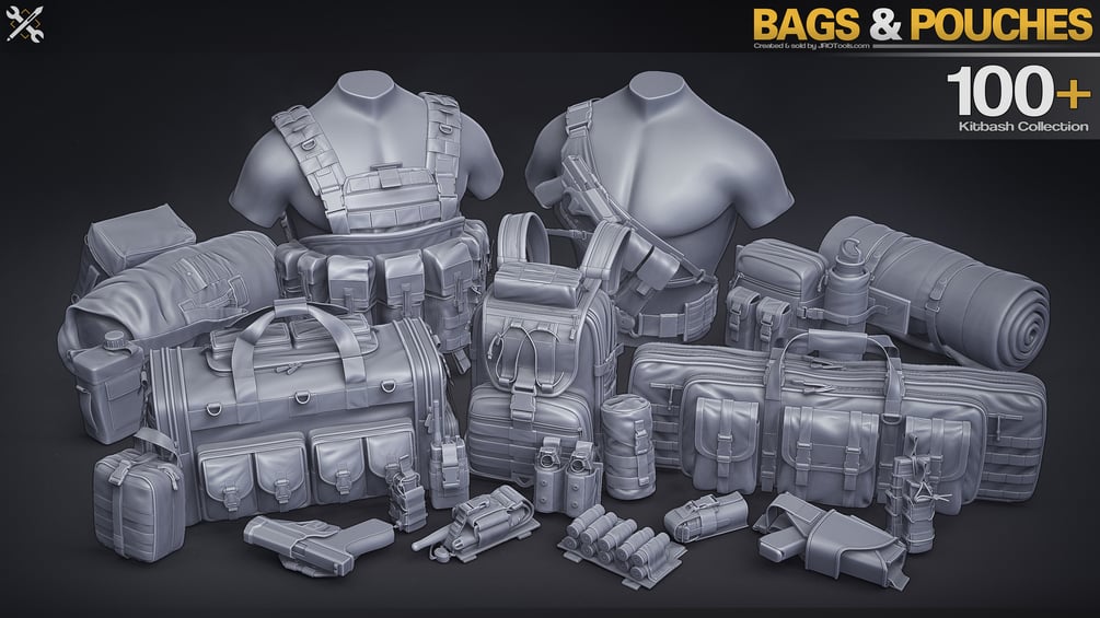 This is a set of 115 midpoly kitbash assets, 74 of the assets also have a sculpted version available as a Ztool for ZBrush. IMM brushes for quick use in ZBrush are also available. You can use the midpoly assets as they are with all soft normals for real time use, or subdivide them to get a more high quality look for renders etc. The midpoly assets are uv-mapped with fully closed geometry, and are created in a way so that you can easily customize the meshes if needed.